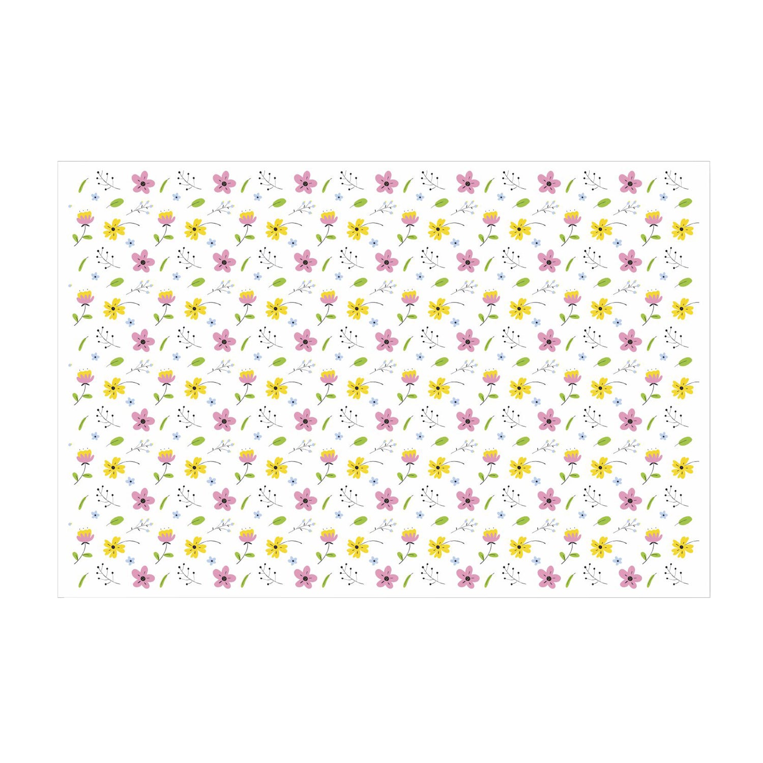 Tissue paper with pink, yellow and lilac blooms. Great for joyful, colorful packaging and gift shops.