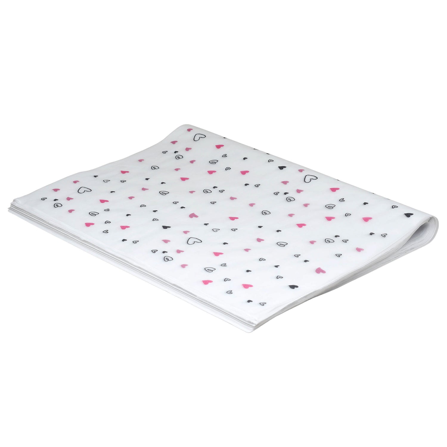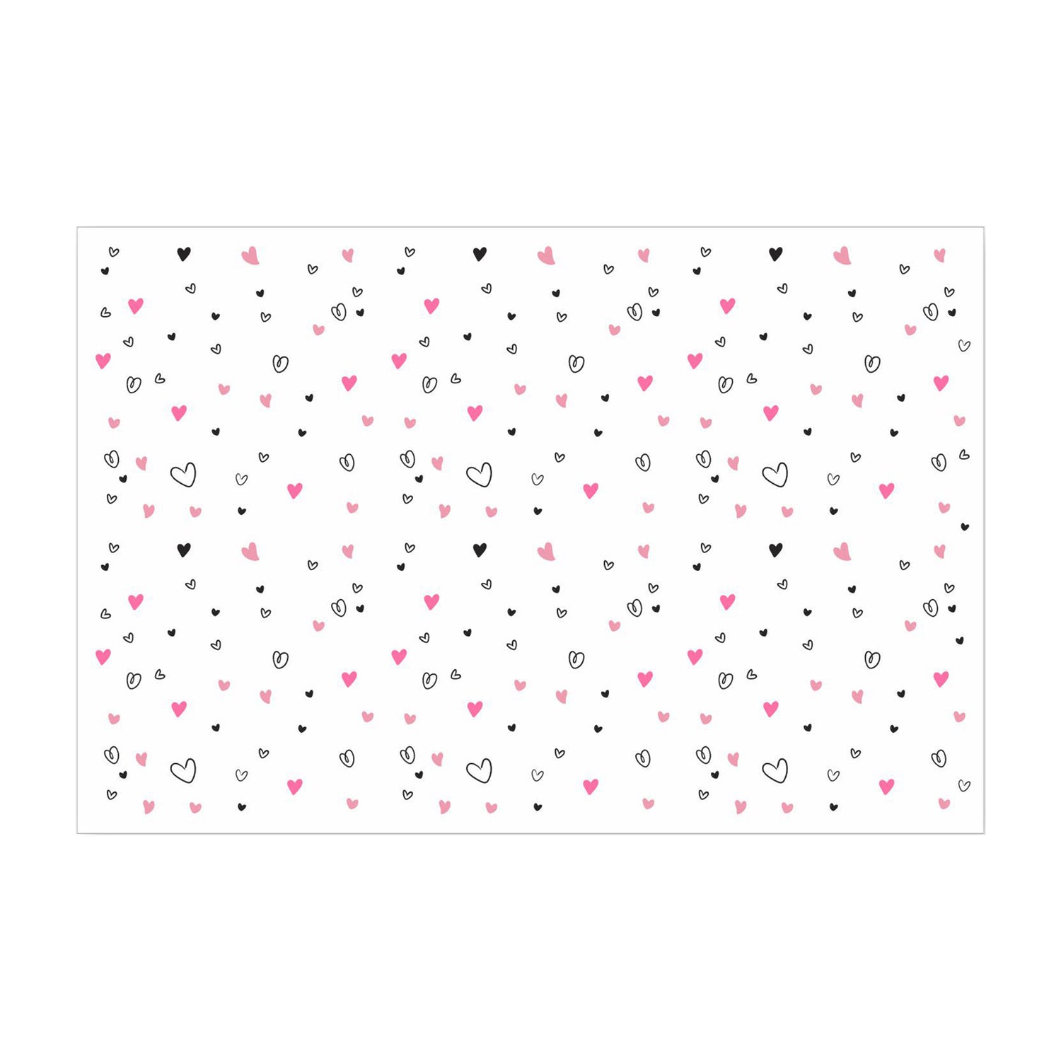 White tissue paper scattered with tiny pink and black hearts, simple yet charming. A minimalist and versatile design, perfect for romantic packaging, elegant gifts and subtle decorations.