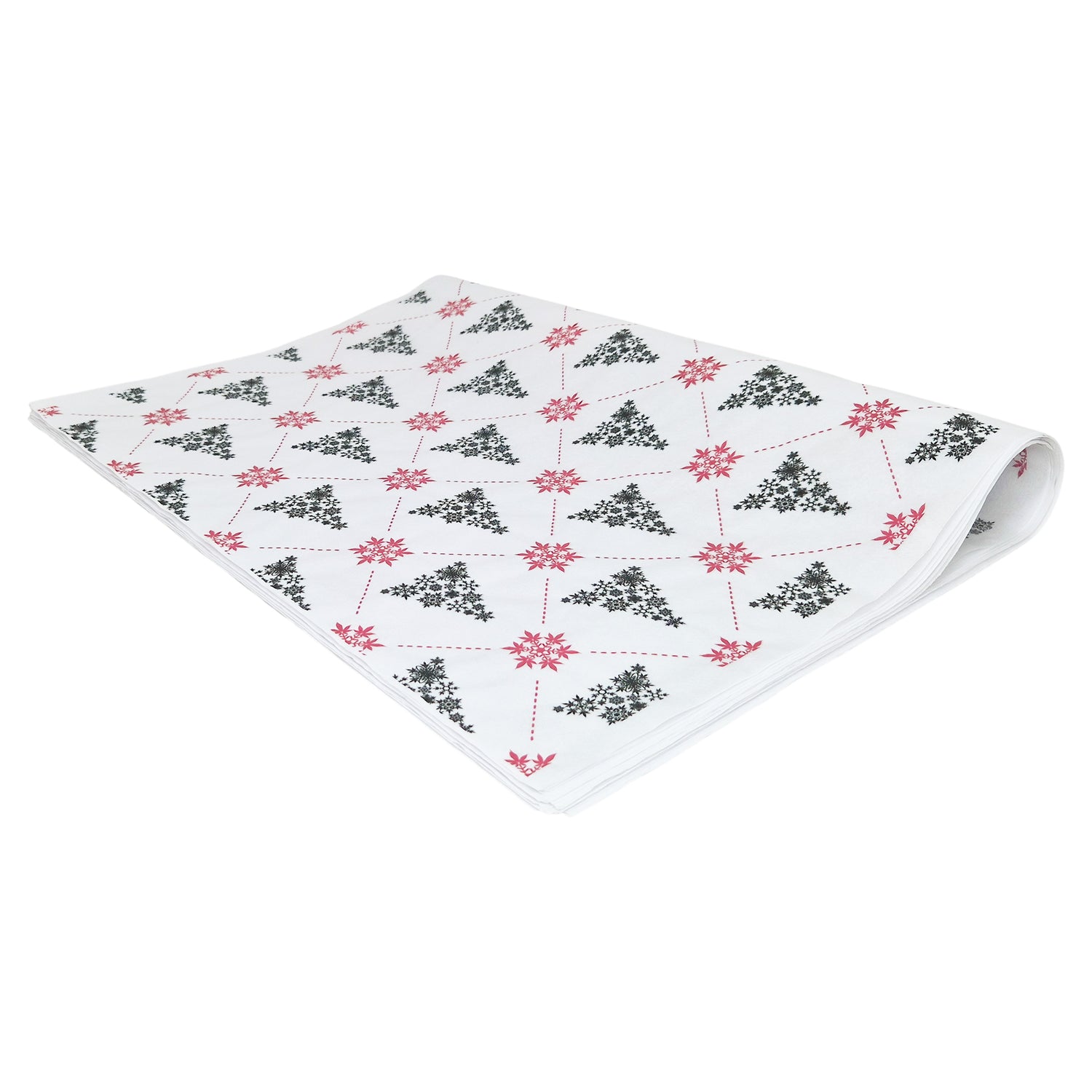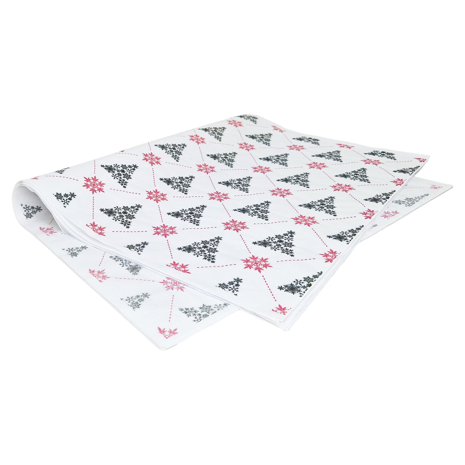 28gsm Festive Trees Christmas tissue paper – 50x75cm format, ideal for attractive and bold gifts. In stock and ready for fast delivery across Europe.