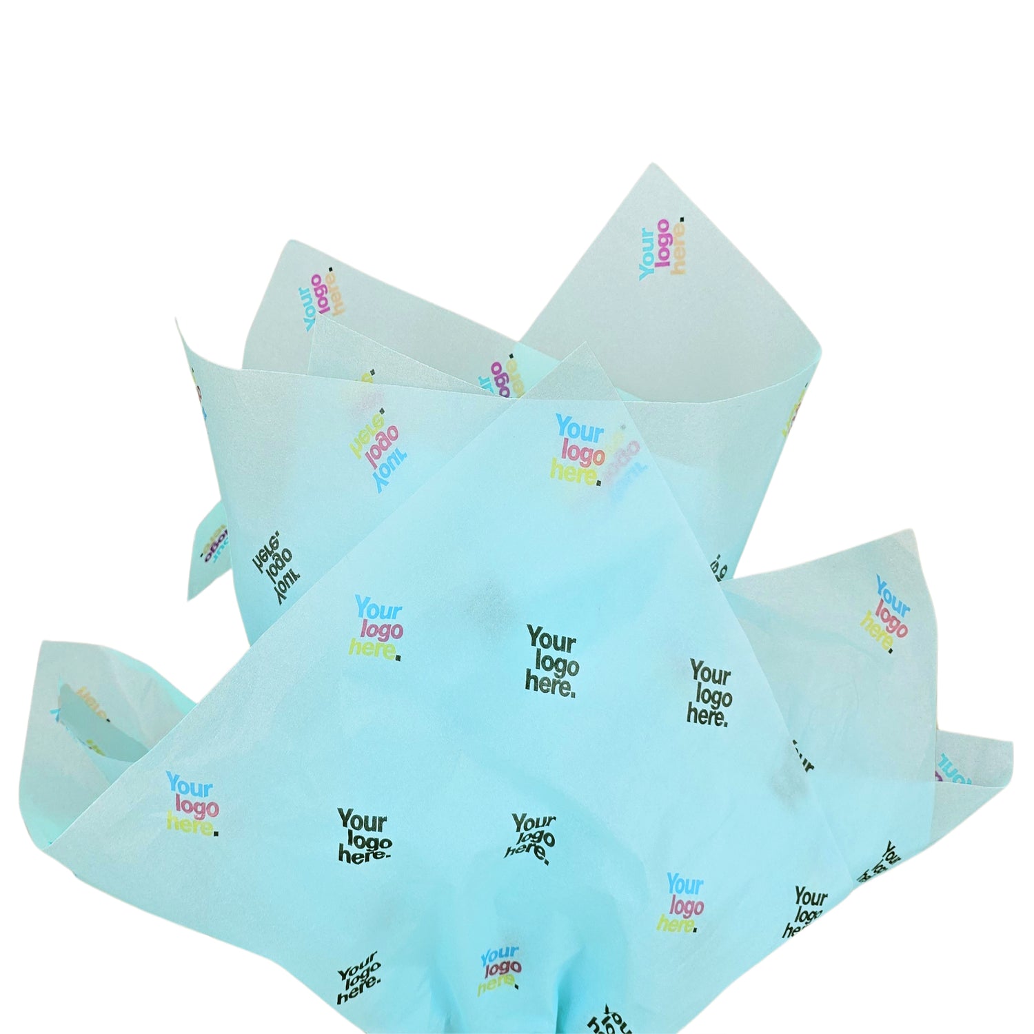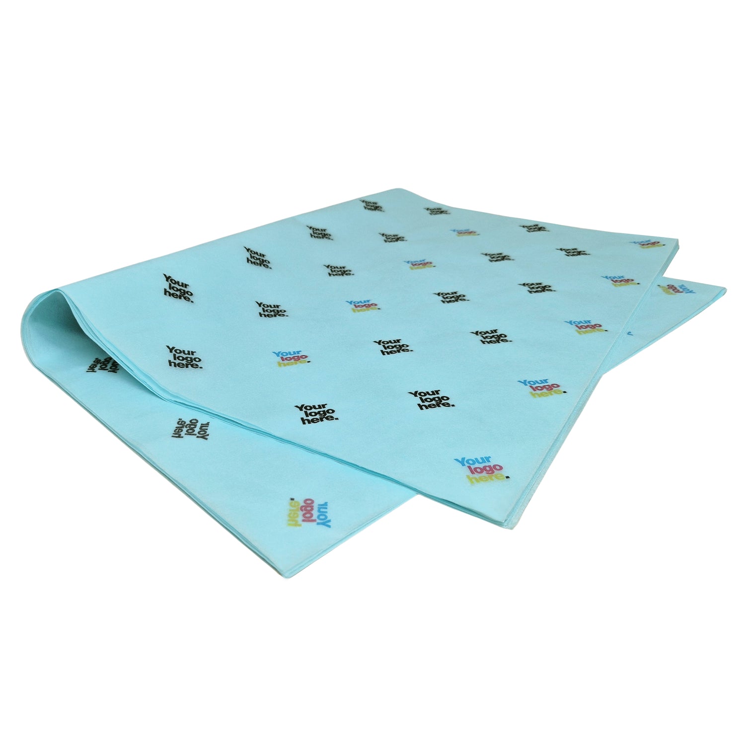 Light blue 17g personalized tissue paper – 50x75cm format, ideal for premium packaging. In stock and ready for fast delivery across Europe.