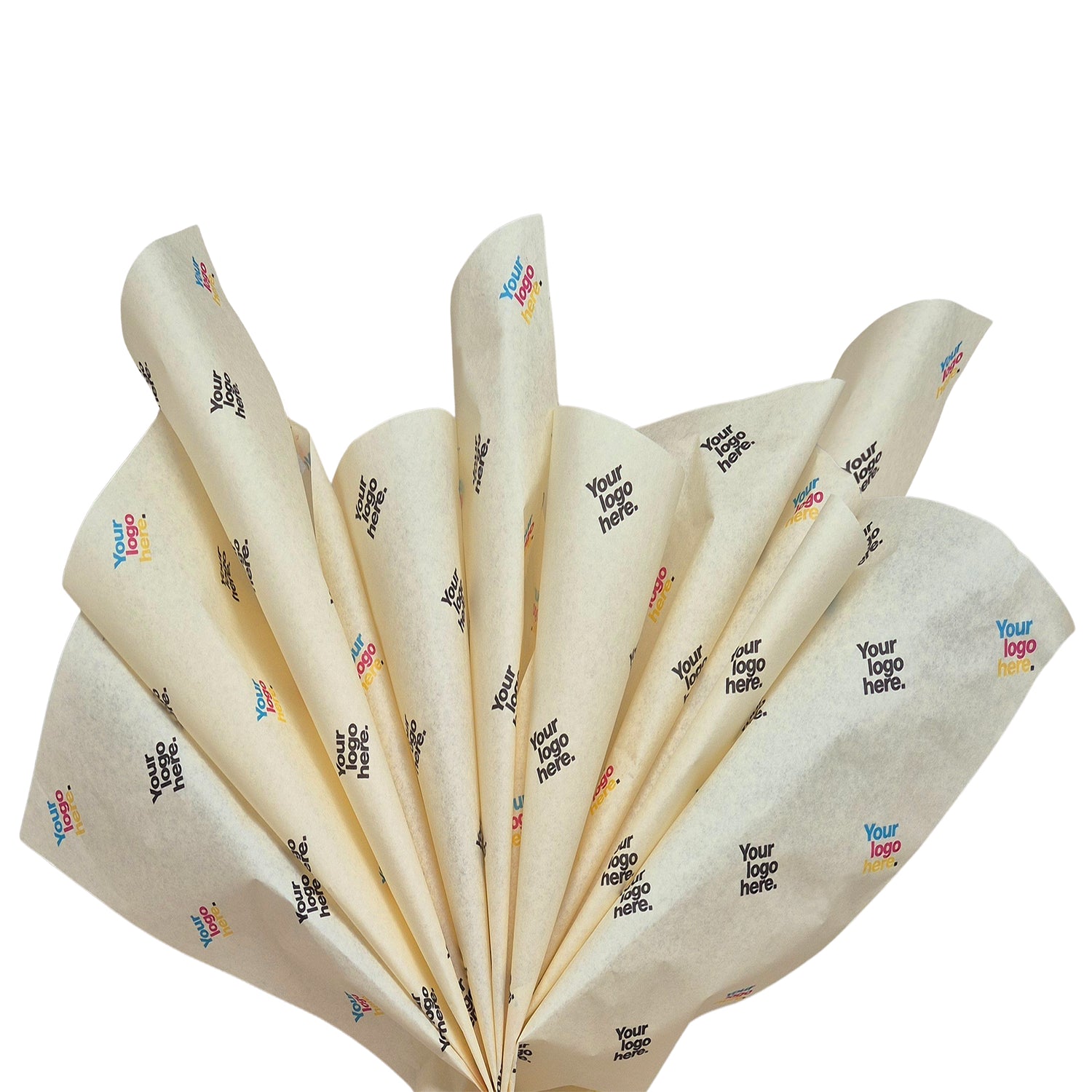 Ivory 28g personalized tissue paper – 50x75cm format, ideal for premium packaging. In stock and ready for fast delivery across Europe.